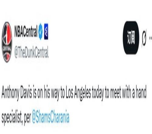 此前,名记Shams率先报道,戴维斯预计将接受左手韧带修复手术,缺席赛场数月。戴维斯对Shams的报道予以否认,并通过社交媒体进行反驳。“大家最好别再相信这些平台上的谎言了。”戴维斯在社媒上写道,随后又在多条援引这一突发新闻的帖子下回复“谎言”二字。在今天将前往洛杉矶与手部专家会面后,浓眉确定无需接受手术。Shams随后也修正了自己的报道,不过未来六周,浓眉是肯定无法出场了。