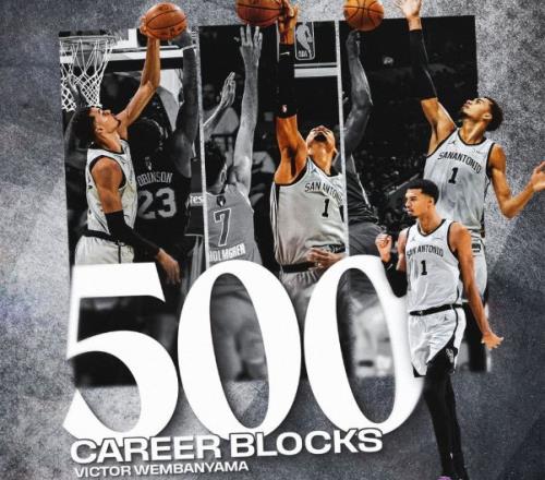被亚历山大撞到膝盖一度痛苦倒地的文班亚马,下半场的表现明显下滑,最终只得到了17分、7个篮板和1个封盖的数据,虽然没有带队横扫雷霆,但文班亚马迎来一个生涯里程碑,成为了NBA历史第二年轻的500次封盖先生,仅次于约什史密斯。
