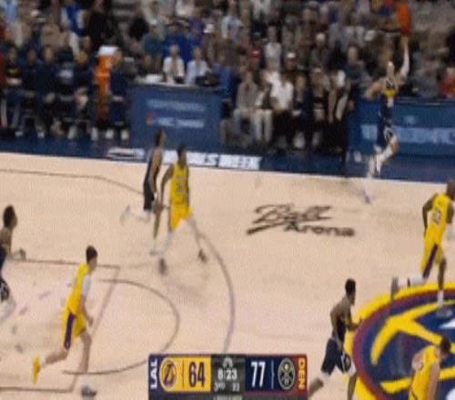 于是掘金一度领先湖人多达整整16分!