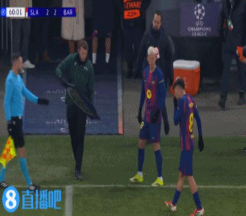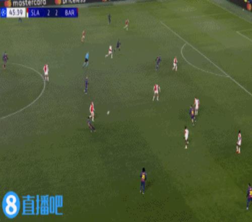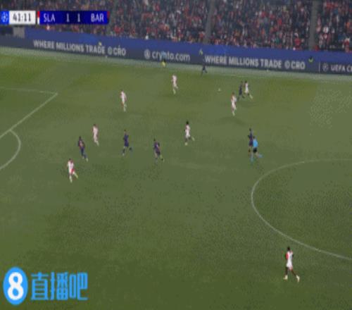 上半场伤停补时2分钟,半场结束,巴萨暂2-2布拉格斯拉维亚。
