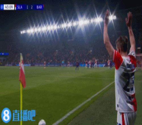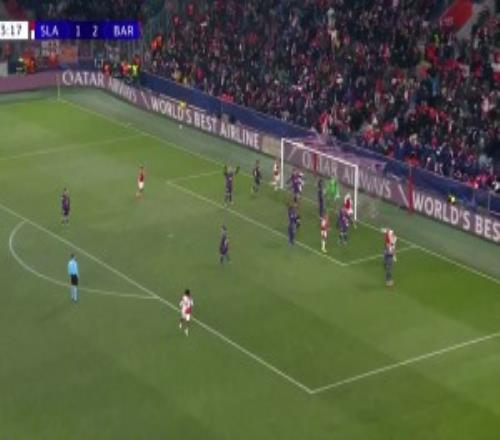 第10分钟,布拉格斯拉维亚角球机会,球罚向禁区,前点霍莱什头球摆渡送向后门柱,后点乱战中库塞伊倒地情况下用脚将球夹进球门,布拉格斯拉维亚1-0巴塞罗那。↓
